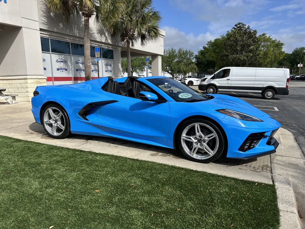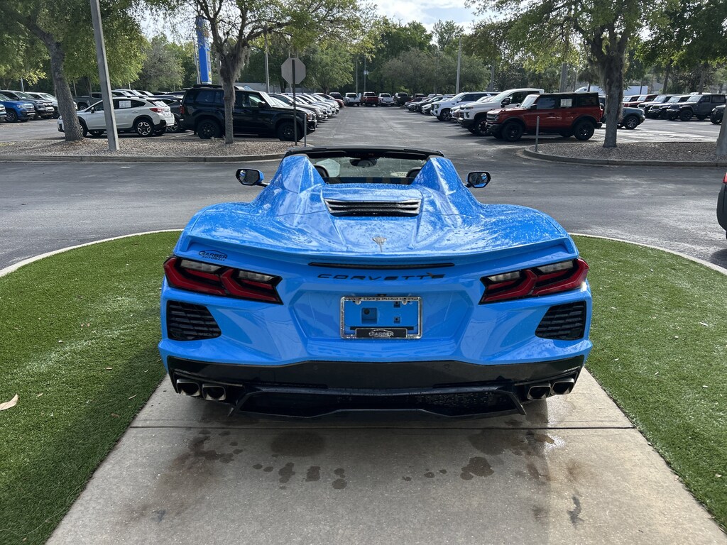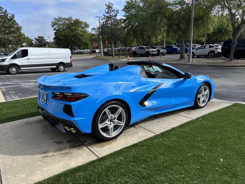 2024 Chevrolet Corvette Stingray 1LT Rapid Blue 10 Speakers, 4-Wheel Disc Brakes, 8-Way Power Driver Seat Adjuster, 8-Way Power Passenger Seat Adjuster, ABS brakes, AM/FM radio: SiriusXM, Auto High-beam Headlights, Auto-dimming Rear-View mirror, Automatic temperature control, Convertible roof lining, Emergency communication system: OnStar and Chevrolet connected services capable, Four wheel independent suspension, Front dual zone A/C, Fully automatic headlights, Glass rear window, GT1 Bucket Seats, Heated door mirrors, Illuminated entry, Integrated roll-over protection, Lane Departure Warning System, Leather Shift Knob, Leather steering wheel, Low tire pressure warning, Low-Profile Rear Spoiler & Front Splitter, Mulan Lthr Seating Surfaces w/Perforated Inserts, Navigation System, Performance Exhaust w/Stainless-Steel Tips, Power convertible roof, Power door mirrors, Power windows, Premium audio system: Chevrolet Infotainment 3 Premium, Remote keyless entry, Speed control, Sport steering wheel, Steering wheel mounted audio controls, Telescoping steering wheel, Tilt steering wheel, Wheels: 19" x 8.5" Fr/20" x 11" Rr Bright Silver.