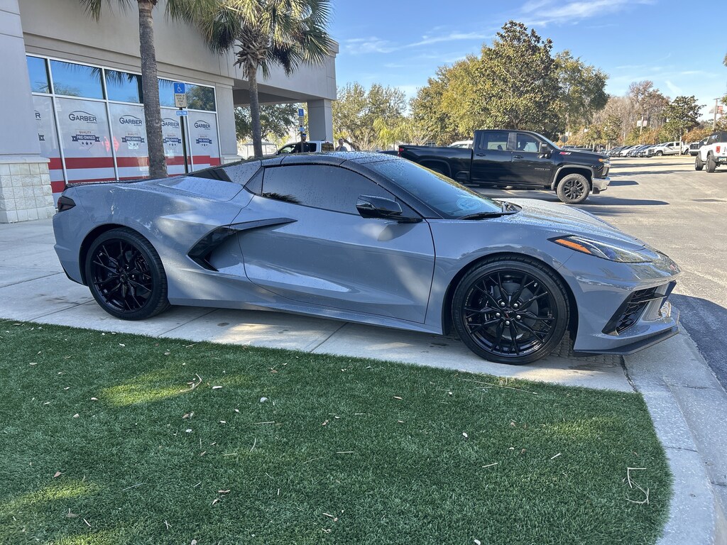2025 Chevrolet Corvette Stingray 2LT Sea Wolf Gray Tricoat WINDOW TINT, 4-Wheel Disc Brakes, 8-Way Power Driver Seat Adjuster, 8-Way Power Passenger Seat Adjuster, ABS brakes, Auto High-beam Headlights, Auto-dimming door mirrors, Auto-dimming Rear-View mirror, Automatic Leveling System Headlamp Control, Automatic temperature control, Black Exhaust Tips, Bose Performance Series Sound System w/14 Speakers, Carbon Flash Metallic-Painted Outside Mirrors, Compass, Convertible HardTop, Convertible roof lining, Convertible Top w/Carbon Flash Nacelles & Roof, Driver Power Bolster Seat Adjuster, Driver vanity mirror, Emergency communication system: OnStar and Chevrolet connected services capable, Exterior Parking Camera Rear, Four wheel independent suspension, Front dual zone A/C, Front Lift Adjustable Height w/Memory, Fully automatic headlights, Garage door transmitter, GT2 Bucket Seats, HD Front & Rear Vision Cameras, Head-Up Display, Heated & Vented Driver & Passenger Seats, Heated door mirrors, Heated Steering Wheel, Illuminated entry, Lane Departure Warning System, Leather Shift Knob, Leather steering wheel, Low tire pressure warning, Low-Profile Rear Spoiler & Front Splitter, Memory seat, Mulan Lthr Seating Surfaces w/Perforated Inserts, Navigation System, Passenger Power Bolster Seat Adjuster, Performance Data & Video Recorder, Performance Exhaust w/Stainless-Steel Tips, Power convertible roof, Power Driver Lumbar Control Seat Adjuster, Power driver seat, Power Passenger Lumbar Control Seat Adjuster, Power windows, Power-Adjustable Outside Heated Mirrors, Rear Cross Traffic Alert, Remote keyless entry, Security system, Side Blind Zone Alert, Speed control, Sport steering wheel, Steering wheel memory, Steering wheel mounted audio controls, Telescoping steering wheel, Tilt steering wheel, Universal Home Remote, Vehicle Inclination Theft Deterrent Sensor, Vehicle Interior Movement Theft Deterrent Sensor, Wheels: 19" x 8.5" Fr/20" x 11" Rr Gloss Black, Wireless Charging for Devices.