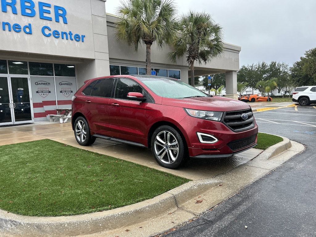 2018 Ford Edge Sport Ruby Red WINDOW TINT, AWD, 110V/150W AC Power Outlet, 12 Speakers, 4-Wheel Disc Brakes, Adaptive Cruise Control & Fwd Collision Warning, AM/FM Stereo w/Single CD Player, Apple CarPlay/Android Auto, Auto-dimming Rear-View mirror, Automatic temperature control, BLIS Blind Spot Information System, Compass, Cooled Front Seats, Driver vanity mirror, Emergency communication system: SYNC 3 911 Assist, Enhanced Active Park Assist, Exterior Parking Camera Rear, Four wheel independent suspension, Front 180 Degree Camera, Front Bucket Seats, Front dual zone A/C, Front reading lights, Fully automatic headlights, Garage door transmitter, Heated door mirrors, Heated front seats, Heated Rear-Seats, HID Projector-Style Headlamps w/Auto High Beams, Illuminated entry, Lane-Keeping System, Leather Shift Knob, Leather-Trimmed Heated Sport Bucket Seats, Low tire pressure warning, Memory seat, Outside temperature display, Overhead console, Panoramic Vista Roof, Passenger vanity mirror, Power door mirrors, Power driver seat, Power Liftgate, Power passenger seat, Power windows, Rain-Sensing Wipers, Rear Parking Sensors, Rear reading lights, Remote keyless entry, Security system, SiriusXM Radio, SiriusXM Traffic & Travel Link, Split folding rear seat, Steering wheel memory, Steering wheel mounted audio controls, SYNC 3 Communications & Entertainment System, Telescoping steering wheel, Tilt steering wheel, Voice-Activated Touchscreen Navigation System, Wheels: 20" Polished w/Magn Low Gloss Ptd Pockets.