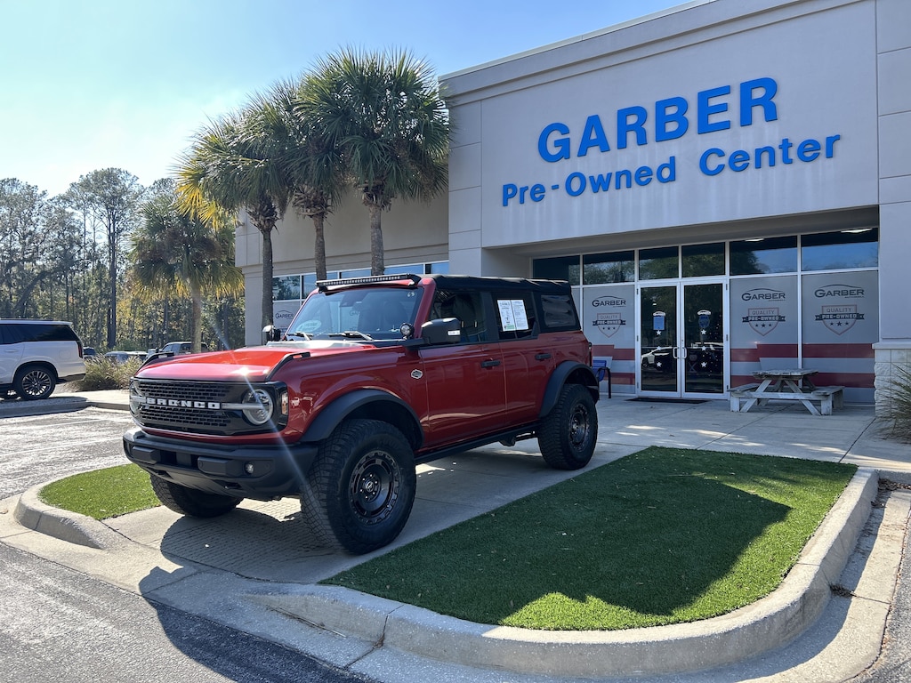 2022 Ford Bronco Wildtrak Hot Pepper Red Metallic Tinted Clearcoat 12" LCD Capacitive Touchscreen w/Swipe Capability, 2 Smart Charging USB Ports In Dashboard, 360-Degree Camera, 4-Wheel Disc Brakes, ABS brakes, Adaptive Cruise Control, Additional Sound Deadening, Alloy wheels, AM/FM radio: SiriusXM with 360L, Auto High-beam Headlights, Compass, Connected Built-In Navigation, Driver vanity mirror, Electronic Stability Control, Emergency communication system: 911 Assist, Evasive Steering Assist, Exterior Parking Camera Rear, Front Bucket Seats, Front Parking Sensors, Front reading lights, Fully automatic headlights, Heated door mirrors, Heated Steering Wheel, Illuminated entry, Information on Demand Panel, Low tire pressure warning, Outside temperature display, Overhead console, Passenger vanity mirror, Power door mirrors, Power windows, Radio: B&O Sound System by Bang & Olufsen, Remote keyless entry, Security system, Split folding rear seat, Steering wheel mounted audio controls, SYNC 4, Telescoping steering wheel, Tilt steering wheel, Universal Garage Door Opener, Wireless Charging Pad.