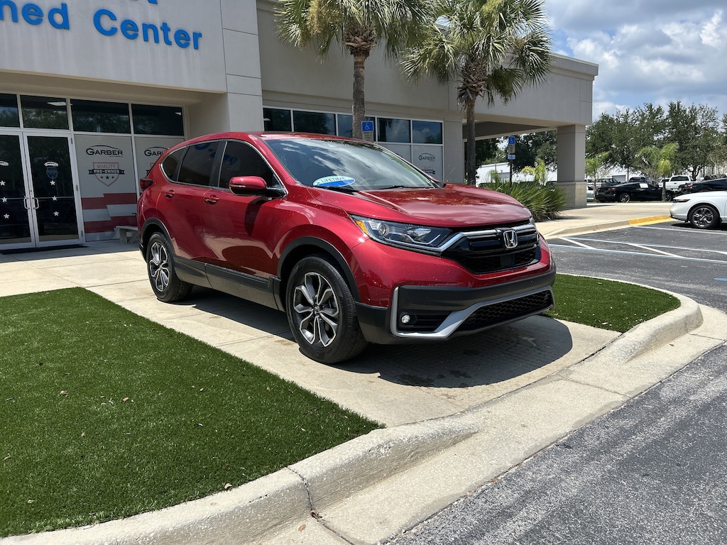 2022 Honda CR-V EX Red 4-Wheel Disc Brakes, 6 Speakers, Adaptive Cruise Control: Adaptive Cruise Control (ACC) with Low-Speed Follow, Alloy wheels, Apple CarPlay/Android Auto, Auto High-beam Headlights, Automatic temperature control, Blind Spot Information (BSI) System warning, Compass, Driver vanity mirror, Electronic Stability Control, Exterior Parking Camera Rear, Forward collision: Collision Mitigation Braking System (CMBS) + FCW mitigation, Four wheel independent suspension, Front dual zone A/C, Front fog lights, Front reading lights, Heated door mirrors, Heated Front Bucket Seats, Illuminated entry, Low tire pressure warning, Outside temperature display, Passenger vanity mirror, Power door mirrors, Power driver seat, Power moonroof, Power windows, Radio: 180-Watt AM/FM/HD/SiriusXM Audio System, Remote keyless entry, Security system, Split folding rear seat, Steering wheel mounted audio controls, Telescoping steering wheel, Tilt steering wheel.