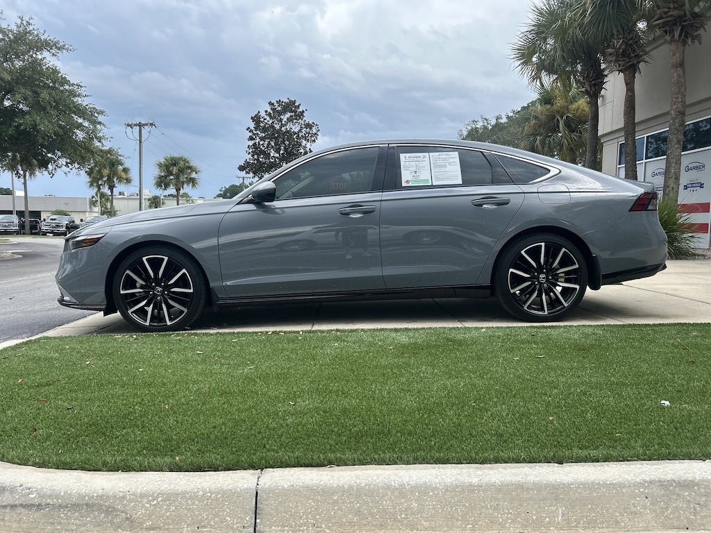 2023 Honda Accord Hybrid Touring Gray WINDOW TINT, 2.0L 16V DOHC, 12 Speakers, 4-Wheel Disc Brakes, Adaptive Cruise Control: Adaptive Cruise Control (ACC) with Low-Speed Follow, Adaptive suspension, AM/FM radio, Apple CarPlay/Android Auto, Auto High-beam Headlights, Auto-dimming Rear-View mirror, Automatic temperature control, Bose Premium Sound System, Compass, Driver vanity mirror, Emergency communication system: HondaLink, Exterior Parking Camera Rear, Four wheel independent suspension, Front Bucket Seats, Front dual zone A/C, Front reading lights, Fully automatic headlights, Heads-Up Display, Heated & Ventilated Front Bucket Seats, Heated door mirrors, Heated rear seats, Illuminated entry, Lane departure: Lane Keeping Assist System (LKAS) active, Leather Shift Knob, Leather steering wheel, Leather-Trimmed Seat Trim, Low tire pressure warning, Memory seat, Navigation system: Google Built-In, Outside temperature display, Passenger vanity mirror, Power door mirrors, Power driver seat, Power moonroof, Power passenger seat, Power windows, Rain sensing wipers, Rear reading lights, Remote keyless entry, Security system, Split folding rear seat, Steering wheel mounted audio controls, Telescoping steering wheel, Tilt steering wheel, Wheels: 19" x 8.5J Berlina Black.