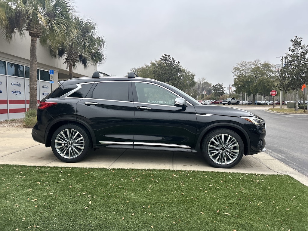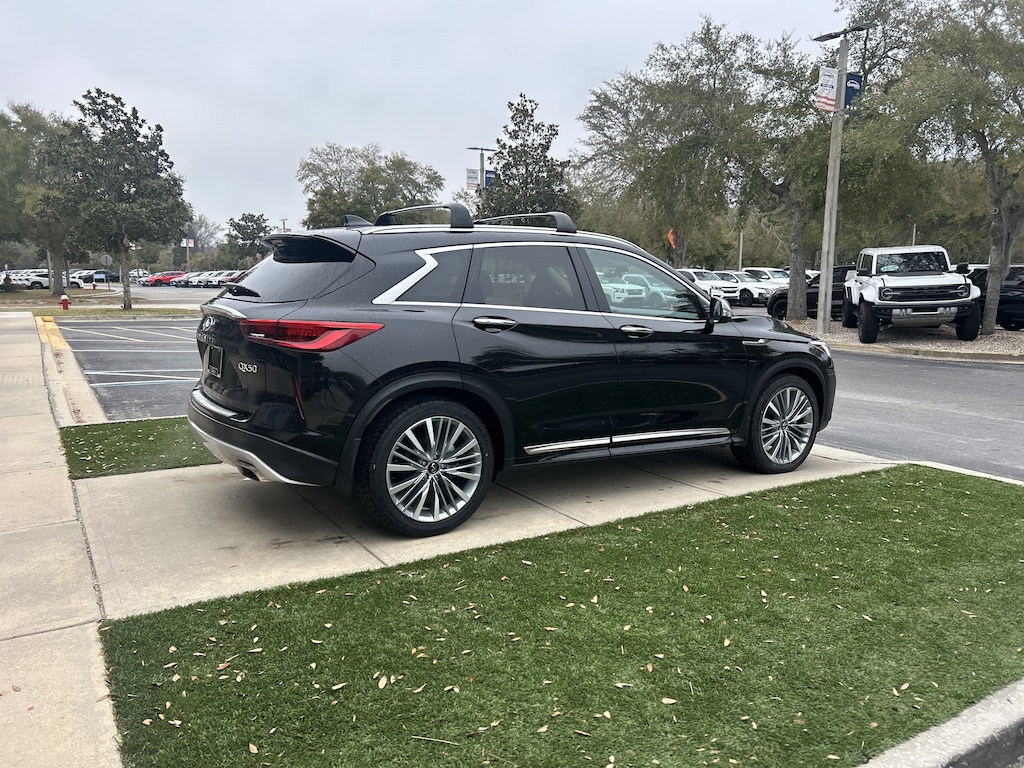 2023 INFINITI QX50 Sensory Mineral Black WINDOW TINT, 16 Speakers, 4-Wheel Disc Brakes, ABS brakes, Accent Package, AM/FM radio: SiriusXM, Auto High-beam Headlights, Auto tilt-away steering wheel, Auto-dimming door mirrors, Auto-dimming Rear-View mirror, Automatic temperature control, Cargo Package, CD player, Climate Controlled Front Bucket Seats, Driver vanity mirror, Electronic Stability Control, Emergency communication system: INFINITI InTouch (1-year complimentary trial), Front dual zone A/C, Front fog lights, Front reading lights, Garage door transmitter: HomeLink, Heads-Up Display, Heated door mirrors, Heated rear seats, Heated steering wheel, Illuminated entry, Illuminated Kick Plates, Leather Shift Knob, Leather steering wheel, Low tire pressure warning, Memory seat, Navigation system: INFINITI InTouch Navigation, Outside temperature display, Passenger vanity mirror, Power door mirrors, Power driver seat, Power Liftgate, Power moonroof, Power passenger seat, Power windows, Radio: Bose Performance Series Audio System, Rain sensing wipers, Rear reading lights, Remote keyless entry, Security system, Semi-Aniline Leather-Appointed Seat Trim, Speed control, Split folding rear seat, Steering wheel memory, Steering wheel mounted audio controls, Telescoping steering wheel, Tilt steering wheel, Welcome Lighting w/Logo, Wheels: 20" Dark Painted.