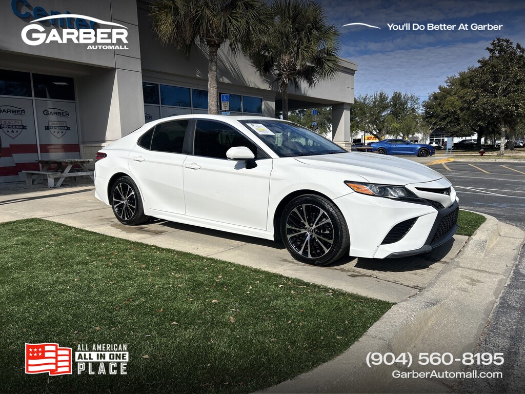 2018 Toyota Camry SE VALUE White WINDOW TINT, Cloth, 4-Wheel Disc Brakes, 6 Speakers, ABS brakes, AM/FM radio, Auto High-beam Headlights, Automatic temperature control, Driver vanity mirror, Electronic Stability Control, Exterior Parking Camera Rear, Front Bucket Seats, Front Center Armrest, Front reading lights, Fully automatic headlights, Illuminated entry, Leather Shift Knob, Low tire pressure warning, Outside temperature display, Passenger vanity mirror, Power door mirrors, Power driver seat, Power windows, Radio: Entune 3.0 Audio, Rear reading lights, Remote keyless entry, Security system, Speed control, Split folding rear seat, Sport steering wheel, Steering wheel mounted audio controls, Telescoping steering wheel, Tilt steering wheel, Wheels: 8.0J x 18" Black Machined-Finish Alloy.