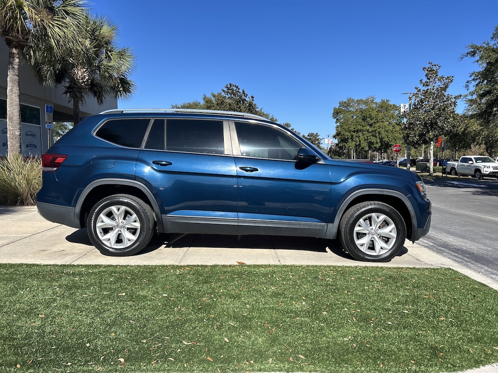 2018 Volkswagen Atlas 3.6L V6 SE 4Motion Blue Metallic WINDOW TINT, 3rd row seats: split-bench, 4-Wheel Disc Brakes, 8 Speakers, ABS brakes, AM/FM radio: SiriusXM, Compass, Driver vanity mirror, Electronic Stability Control, Emergency communication system: VW Car-Net, Exterior Parking Camera Rear, Four wheel independent suspension, Front fog lights, Front reading lights, Heated door mirrors, Heated Front Bucket Seats, Illuminated entry, Low tire pressure warning, Outside temperature display, Passenger vanity mirror, Power door mirrors, Power driver seat, Power windows, Radio: Composition Media 8.0" Touchscreen w/CD, Rain sensing wipers, Rear air conditioning, Rear reading lights, Remote keyless entry, Security system, Speed control, Speed-sensing steering, Split folding rear seat, Steering wheel mounted audio controls, Telescoping steering wheel, Tilt steering wheel, Wheels: 18" Prisma Alloy.