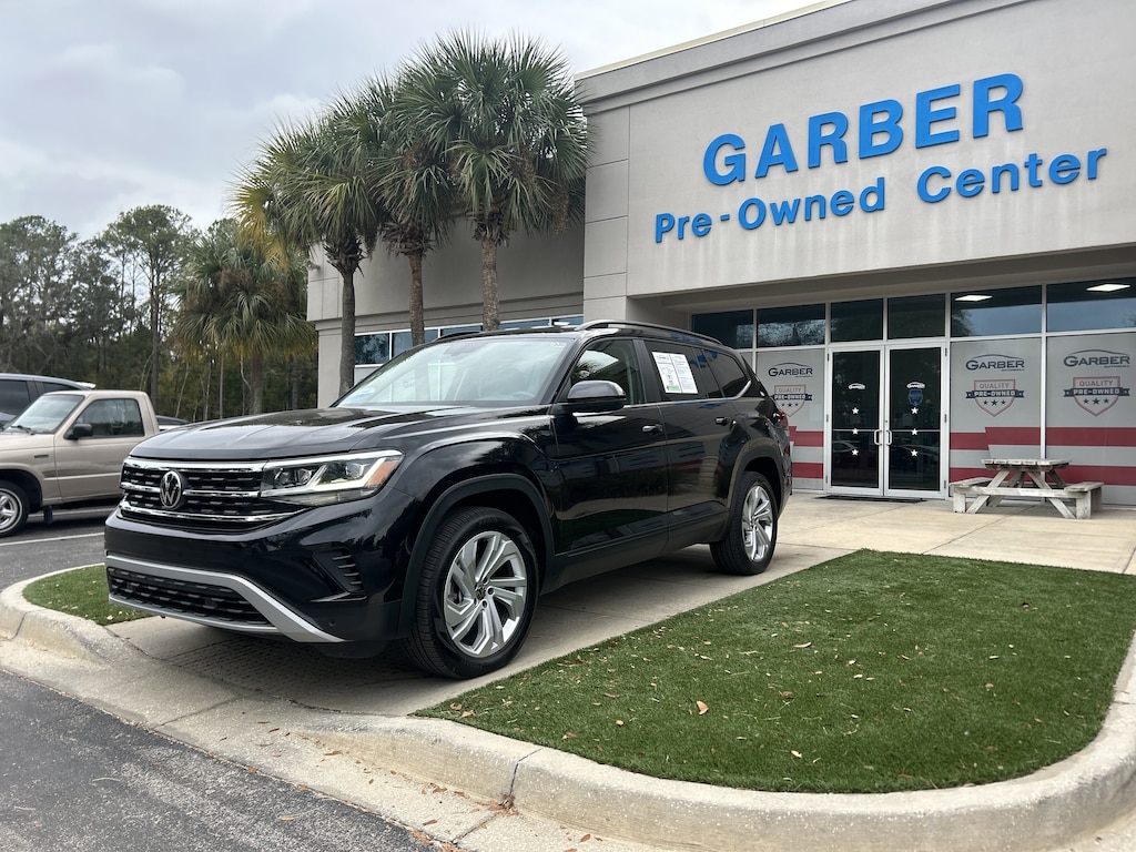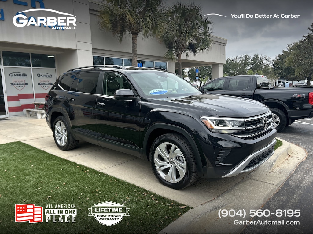 2021 Volkswagen Atlas 3.6L V6 SE w/Technology Deep Black 4-Wheel Disc Brakes, 6 Speakers, ABS brakes, Auto-dimming Rear-View mirror, Automatic temperature control, Brake assist, Driver vanity mirror, Emergency communication system: VW Car-Net services (capabilities require enrollment or subscription), Exterior Parking Camera Rear, Forward collision: FCW w/Autonomous Emergency Braking mitigation, Four wheel independent suspension, Front Bucket Seats, Front dual zone A/C, Front fog lights, Front reading lights, Fully automatic headlights, Heated Comfort Front Bucket Seats, Heated door mirrors, Heated front seats, Illuminated entry, Leather Shift Knob, Low tire pressure warning, Outside temperature display, Passenger vanity mirror, Perforated V-Tex Leatherette Seating Surfaces, Power door mirrors, Power driver seat, Power Liftgate, Power windows, Rain sensing wipers, Rear air conditioning, Rear reading lights, Remote keyless entry, Security system, Speed control, Speed-sensing steering, Split folding rear seat, Steering wheel mounted audio controls, Telescoping steering wheel, Tilt steering wheel, Wheels: 20" 5-Spoke Silver Alloy.